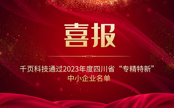 • 喜報!千頁科技榮獲四川省“專精特新”中小企業稱號